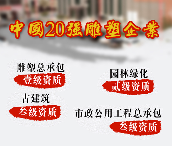 河北鑫特園林建筑雕塑有限公司成立于2002年,是中國雕刻之鄉(xiāng)——曲陽縣的一家實力雄厚的大型雕塑公司,公司占地面積50000+平方米,年產(chǎn)值超過億元,具有雕塑總承包一級資質(zhì)、古建筑三級資質(zhì)、市政公用工程施工總承包三級資質(zhì)。